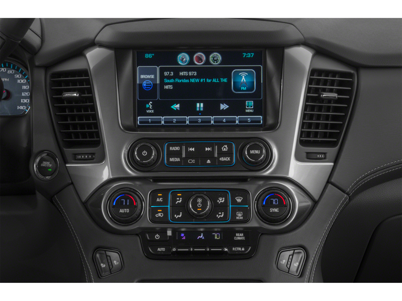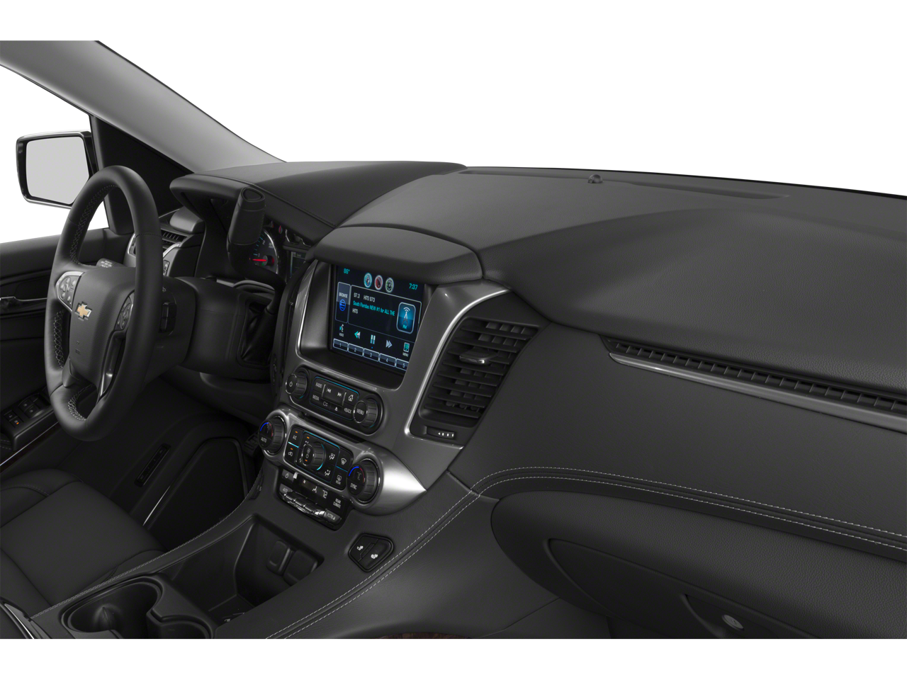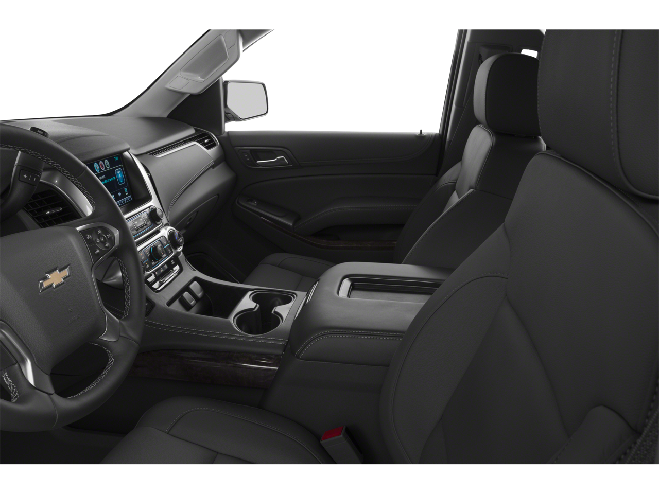 Sun. Entertainment and Destinations Package: Chevrolet MyLink Radio with Navigation/AM/FM Stereo; Rear Seat Entertainment System; Power Tilt-Sliding Sunroof with Express-Open/close. Max Trailering Package: 2-Speed Active Electronic Autotrac Transfer Case; Standard Suspension Package; 3.42 Rear Axle Ratio; Integrated Trailer Brake Controller. Preferred Equipment Group 1LT: Extended-Range Remote Keyless Entry; Memory Settings; 2nd Row 60/40 Split-Folding Manual Bench; Forward Collision Alert Sensor Indicator; Leather-Appointed Seat Trim; Heated Front Reclining Bucket Seats; Power Liftgate; Rear Park Assist; Floor Console with Storage Area; Single-Speed Active Autotrac Transfer Case; Driver and Front Passenger Airbags; Auto-Dimming Inside Rearview Mirror; Power-Adjustable Accelerator and Brake Pedals; Lane Departure Warning and Safety Alert Seat; 3rd Row Manual 60/40 Split-Folding Fold Flat Bench; Universal Home Remote; Heavy-Duty Locking Rear Differenti