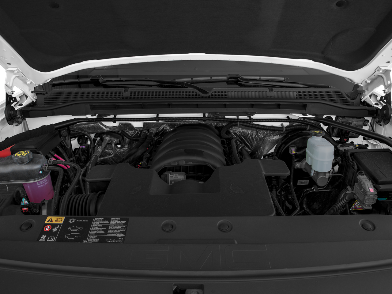 Enhanced Driver Alert Package: Lane Keep Assist; Forward Collision Alert; Low Speed Forward Automatic Braking; Ultrasonic Front and Rear Park Assist; IntelliBeam Automatic High Beam On/off Headlight. SLT Crew Cab Premium Plus Package: Leather Wrapped Heated Steering Wheel; Bose Speaker System; 20" X 9" Chrome Clad Aluminum Wheels; Power Sliding Rear Window with Defogger; Front Full Feature Power Reclining Bucket Seats; Spray-On Pickup Box Bed Liner with GMC Logo; High-Performance LED Headlamps; Integrated Trailer Brake Controller; AM/FM Stereo with 8" Diagonal Color Touch Navigation; Heated and Ventilated Front Bucket Seats; 6" Rectangular Chromed Tubular Assist Steps. Preferred Equipment Group 4SA: LED Cargo Box Lighting; EZ Lift and Lower Tailgate; Chrome Door Handles; Rear Vision Camera; Rear 60/40 Folding Bench Seat (folds Up); Remote Vehicle Starter System; 5.3L EcoTec3 V8 Engine; Electric Rear Window Defogger; Theft Deterrent System (unauthorized Entry); Auxiliary External Transmission Oil Cooler; 4.2" Diagonal Color