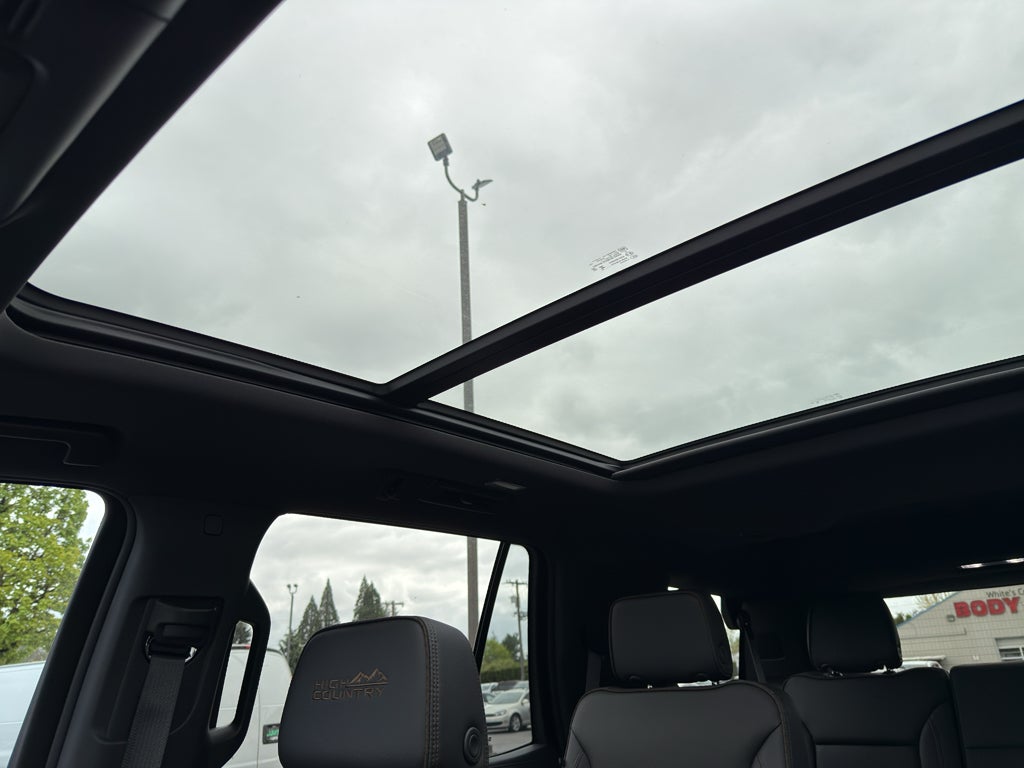 Max Trailering Package: Extra Capacity Cooling System. Advanced Trailering Package: Trailer Side Blind Zone Alert; Smart Trailer Integration Indicator; Integrated Trailer Brake Controller; Hitch View with Pan/zoom Image Adjustment. High Country Deluxe: Dual-Pane Power Panoramic Sunroof; Air Ride Adaptive Suspension; Power-Retractable Assist Steps. Preferred Equipment Group 3LZ: Bright Front and Rear Door Sill Plates; Memory Settings; Perforated Leather Seat Trim; Remote Start; 3rd Row 60/40 Power-Folding Split-Bench Seat; Safety Alert Seat; Chrome Door Handles with Body-Color Strip; Hill Descent Control; 6.2L EcoTec3 V8 Engine; Rear Camera Mirror Washer; Inside Rearview Auo-Dimming Rear Camera Mirror; Heated Steering Wheel; LED Daytime Running Lamps; Rear Cross Traffic Alert; Wheels: 22" X 9" Sterling Silver Premium Painted; Driver and Front Outboard Passenger Airbags; Wireless Charging; Front High-Back Reclining Bucket Seats; Adaptive Cruise Control; Universal Home Remote; Color-Keyed Carpeting Floor Covering; Heated 2nd Row Outboard Seats; Hands-Free Rear Power Programmable
