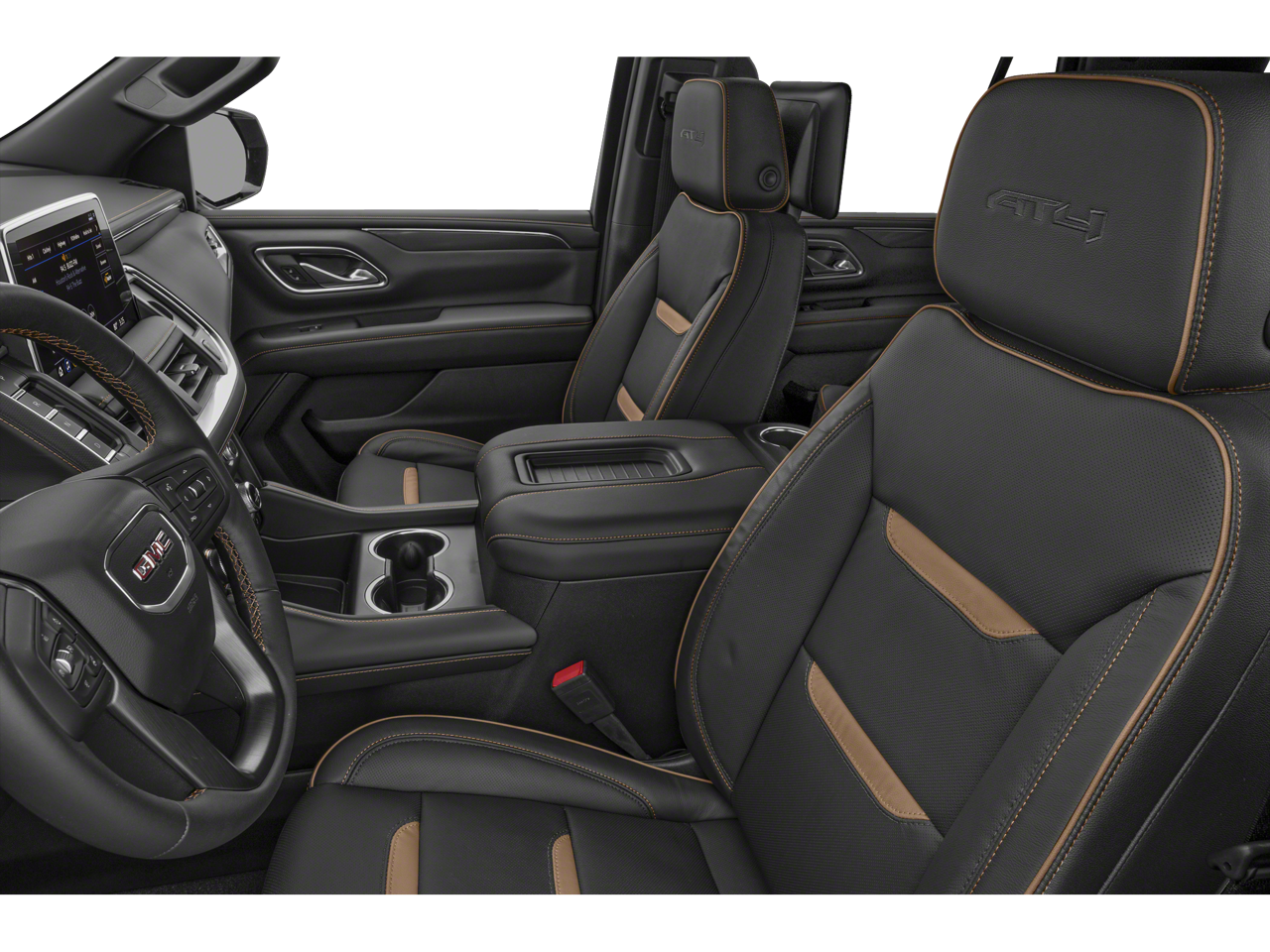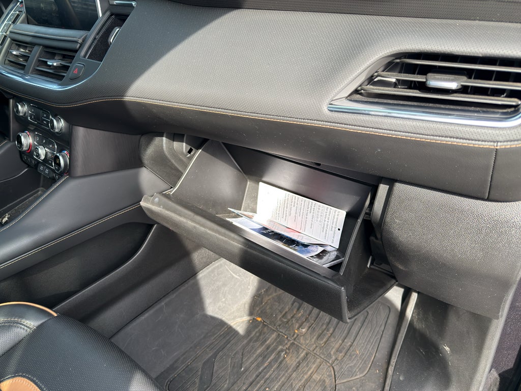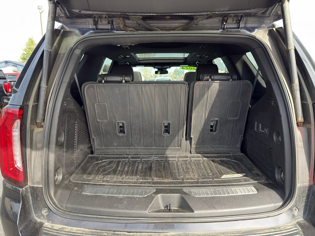 AT4 Premium Package: Dual-Pane Panoramic Power Sunroof; Power-Retractable Assist Steps. Technology Package: HD Surround Vision; 15" Diagonal Multi-Color Head-Up Display; Rear Pedestrian Alert. Preferred Equipment Group 4SB: Bright Front and Rear Door Sill Plates; Power Release 2nd Row 60/40 Split-Folding Bench Seat; 2 Presets For Outside Rearview Mirrors; 12-Way Power Seat Adjusters; 3rd Row 60/40 Power-Folding Split-Bench Seat; Safety Alert Seat; Hill Descent Control; Heavy-Duty Air Filter; Heated Steering Wheel; Heated Driver and Front Passenger Seats; Wireless Charging; Universal Home Remote; Heated 2nd Row Outboard Position Seats; Front Skid Plate; Front High-Approach Angle Fascia; Hands-Free Power Programmable Rear Liftgate; Bose 9-Speaker Stereo Audio System Feature; 2-Speed Electronic Autotrac Active Transfer Case; GMC Pro Safety Plus; Red Horizontal-Mounted Recovery Hooks; Perforated Heated and Ventilated Driver and Front Passenger Seats; Power Tilt and Telescopic Steering Column; Black Roof-Mounted Lug