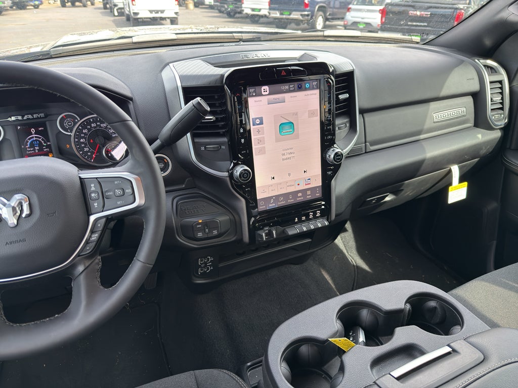 Big Horn Level 1 Plus Equipment Group: Google Android Auto; SiriusXM Radio Service; For Details Visit DriveUconnect.com; For More Info. Call 800-643-2112; Integrated Voice Command with Bluetooth®; Emergency Vehicle Alert System (EVAS); Cloth 40/20/40 Premium Bench Seat; Glove Box Lamp; 12" Touchscreen Display; Auto Power-Folding Mirrors; Footwell Courtesy Lamp; Mirror Running Lights; MOPAR Deployable Bed Step; Alexa Built-In; Apple CarPlay; Power-Adjustable Convex Aux Mirrors; Forward and Reverse Utility Lights; Locking Lower Glove Box; Remote Start System; 9 Alpine Speakers with Subwoofer; Dual Glove Boxes; 2nd Row in Floor Storage Bins; Rear View Auto Dim Mirror; Rear Dome with On/off Switch Lamp; LED Bed Lighting; Connectivity - US/Canada; GPS Navigation; 4G LTE Wi-Fi Hot Spot; GPS Antenna Input; Exterior Mirrors with Heating Element; SiriusXM with 360L; Global Telematics Box Module; Connected Travel and Traffic Services; Foam Bottle Insert (door Trim Panel); Black Exterior Mirrors; Big Horn Instrument Panel Badge; Off-Road Information Pages; Selectable Tire Fill Alert; Trailer Tow Pages; HD Radio; Uconnect 5 Navigation with 12.0" Di