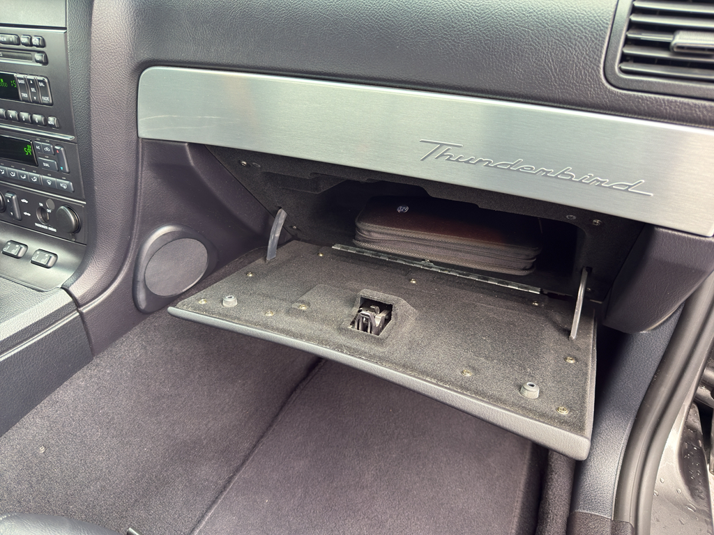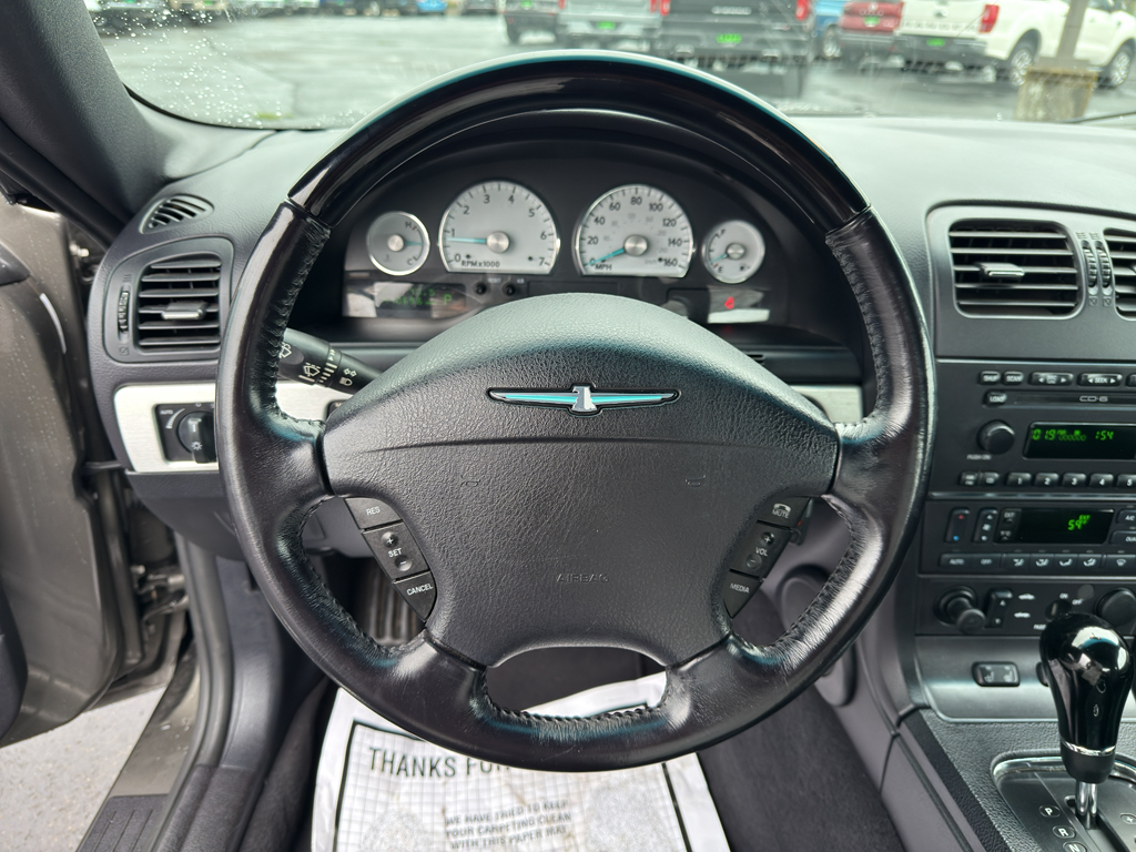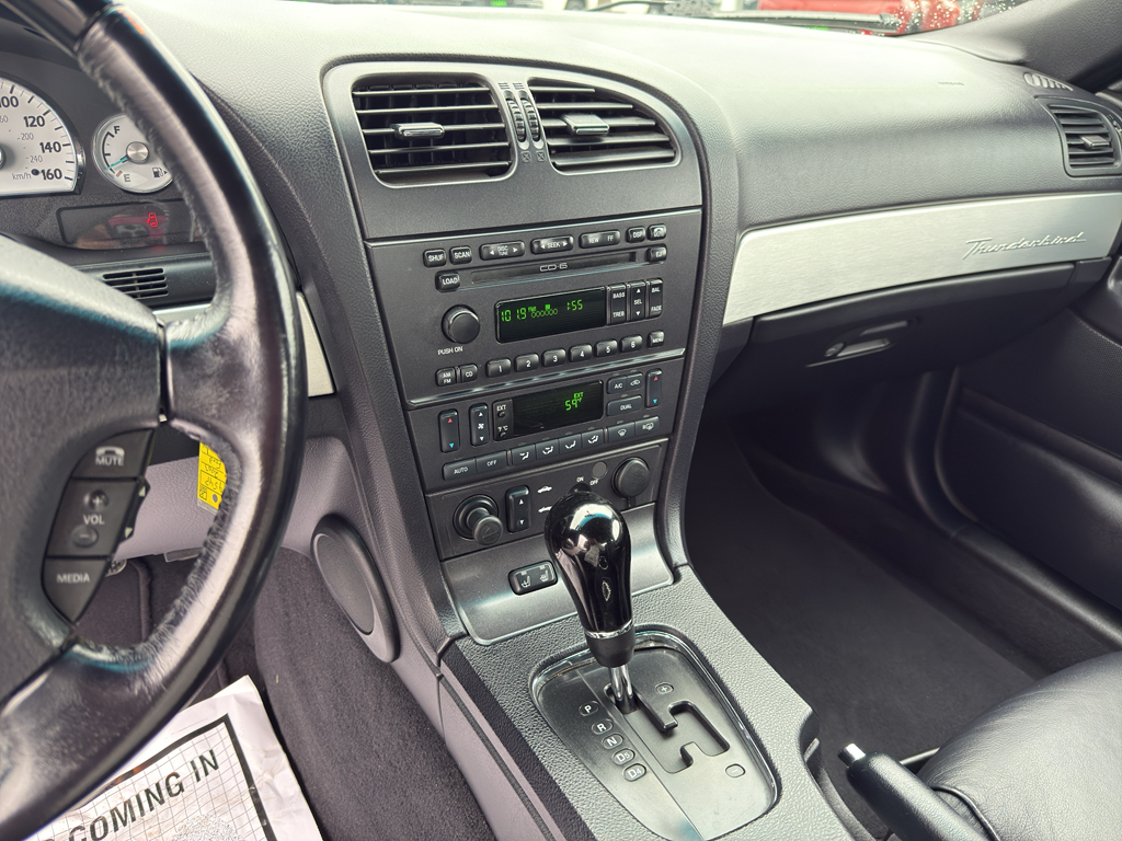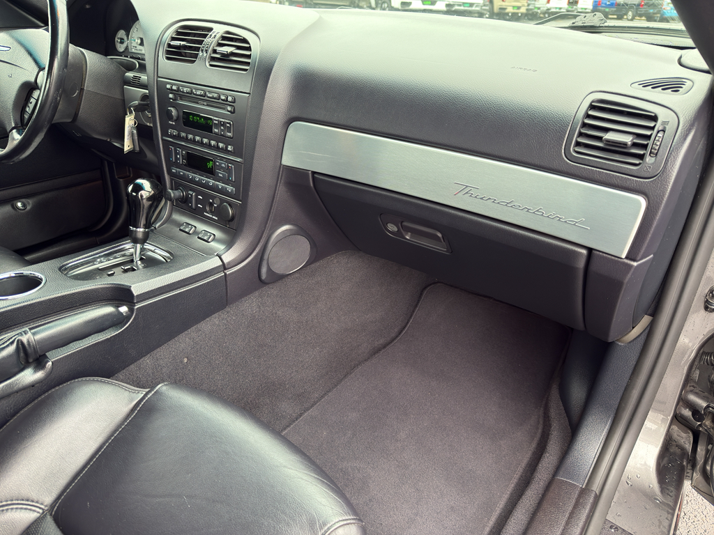 The leather seats in this model are a must for buyers looking for comfort, durability, and style. Our dealership has already run the CARFAX report and it is clean. A clean CARFAX is a great asset for resale value in the future. It keeps you comfortable with Auto Climate. It is rear wheel drive. Set the temperature exactly where you are most comfortable in this mid-size car. The fan speed and temperature will automatically adjust to maintain your preferred zone climate. This 2003 Ford Thunderbird has a V8, 3.9L high output engine. The vehicle emanates grace with its stylish gray exterior. This 2003 Ford Thunderbird features cruise control for long trips. The Ford Thunderbird is equipped with a gasoline engine. The high efficiency automatic transmission shifts smoothly and allows you to relax while driving. Help alleviate lower back pain with the driver seat lumbar support in this model. Anti-lock brakes are standard on this unit.
