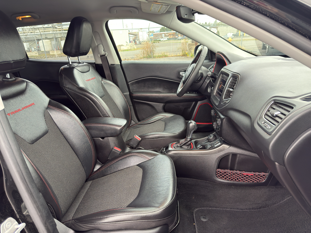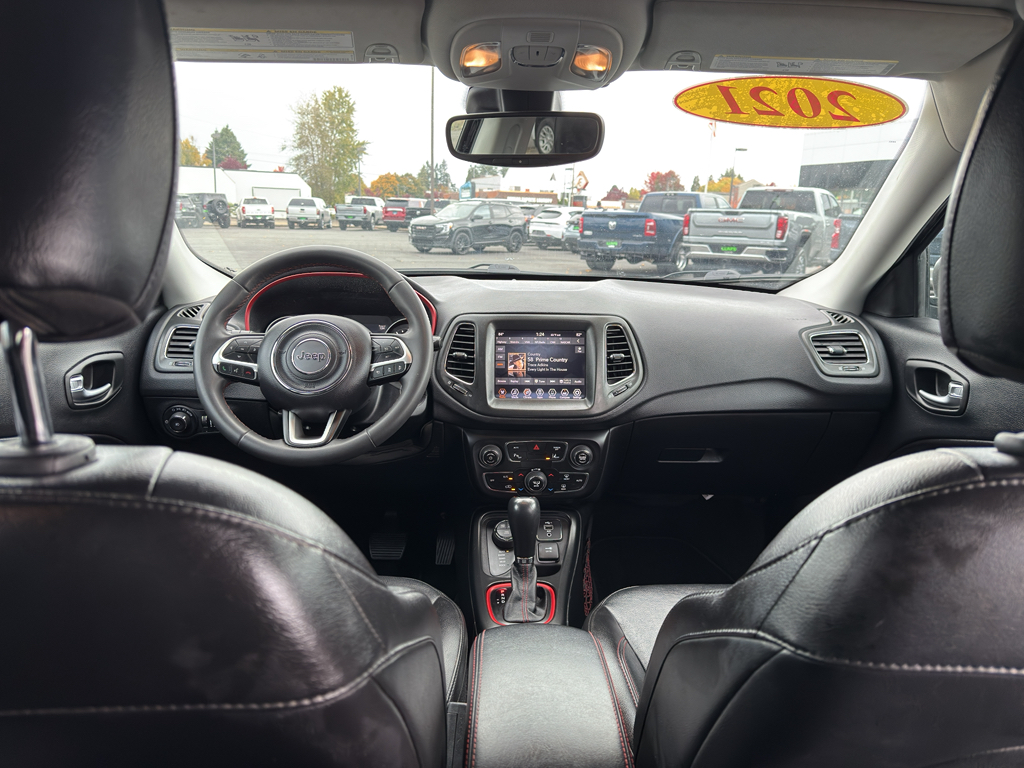 2021 Jeep Compass Trailhawk 4WD — 2.4L 4-Cylinder, McMinnville OR. This rugged and refined Jeep Compass Trailhawk delivers confident off-road capability with premium comfort and modern tech. Powered by a responsive 2.4L 4-cylinder gasoline engine and equipped with part-time 4WD, it balances efficiency and traction for Pacific Northwest roads and light trails. The Trailhawk trim adds upgraded suspension, skid plates, and distinctive styling for enhanced capability and presence. Inside, enjoy leather seats and automatic climate control for a comfortable cabin on every drive. Android Auto integration keeps navigation, music, and hands-free calling easily accessible through your compatible smartphone. Safety features include Lane Departure Warning to help maintain proper lane position, adding peace of mind on longer commutes. This vehicle comes with a CARFAX Clean Report, confirming a well-documented history. It has been carefully inspected and maintained for dependable daily driving. Whether you're heading to the coast, mountains, or around McMinnville, OR, this Jeep Compass Trailhawk is ready for adventure with strong capability and refined interior amenities. Priced to move — this Trailhawk offers the best price in the area for its condition, features, and capability. Contact us to schedule a test drive in McMinnville and see why this 2021 Jeep Compass Trailhawk is an excellent value for drivers seeking capability, comfort, and modern connectivity.