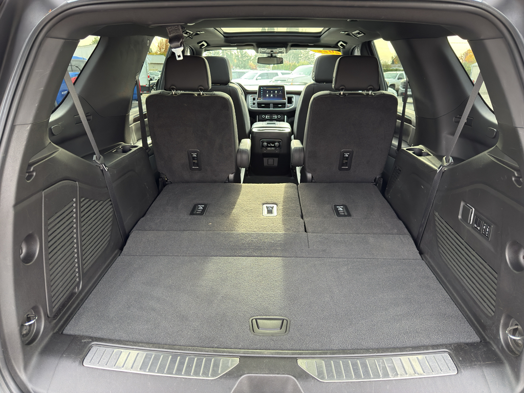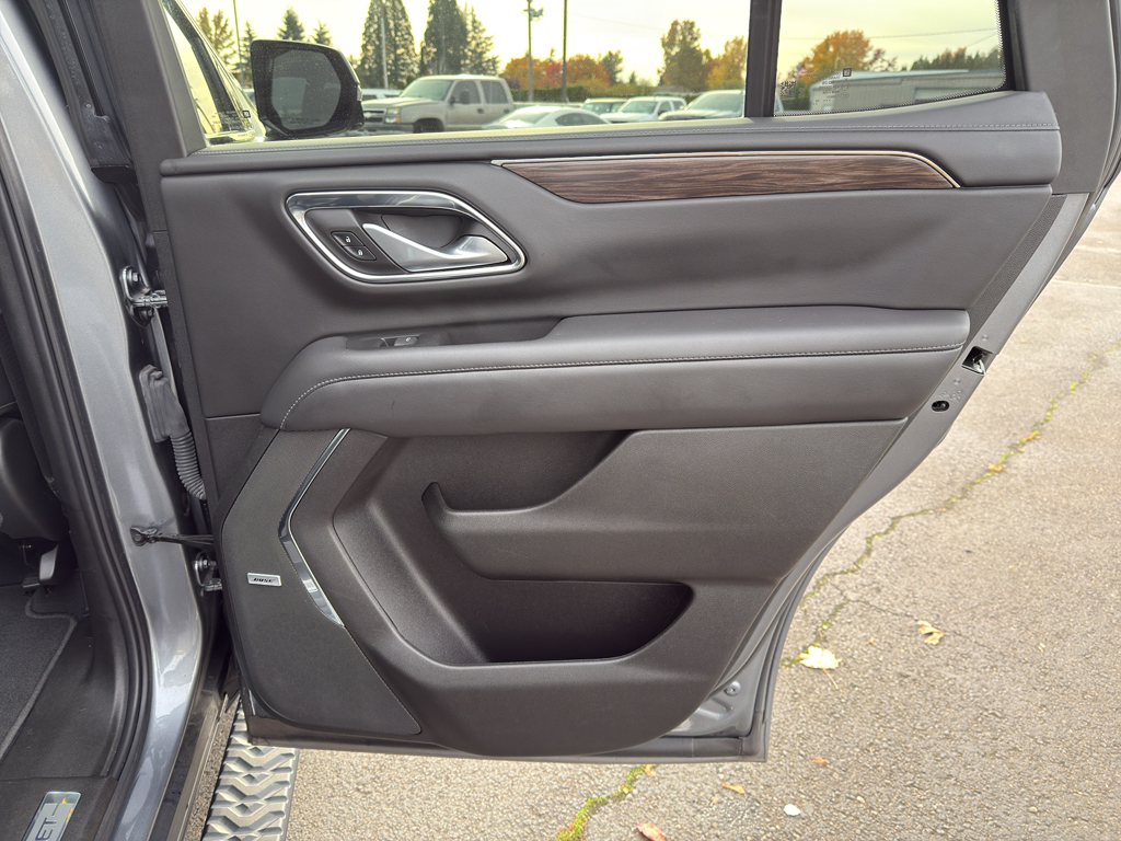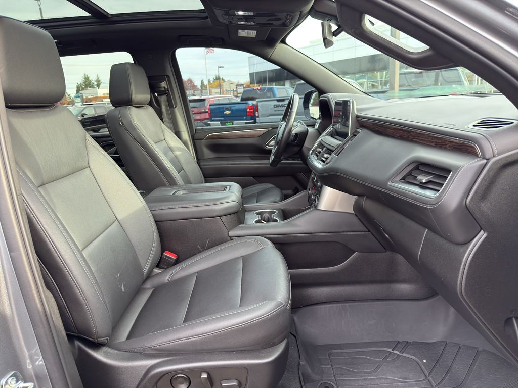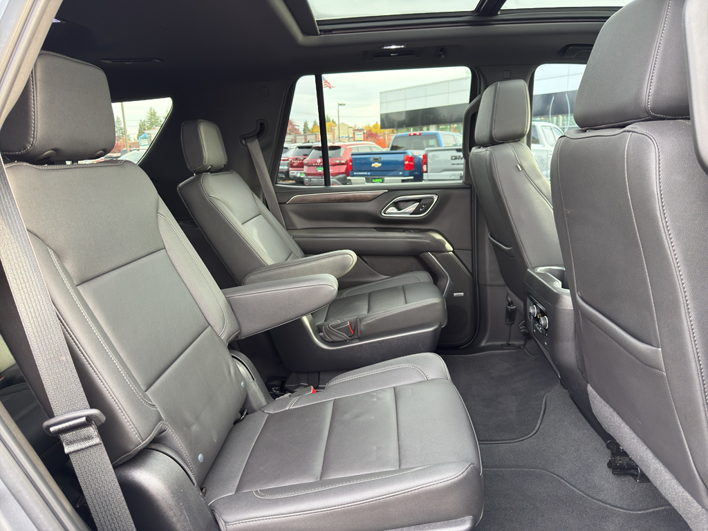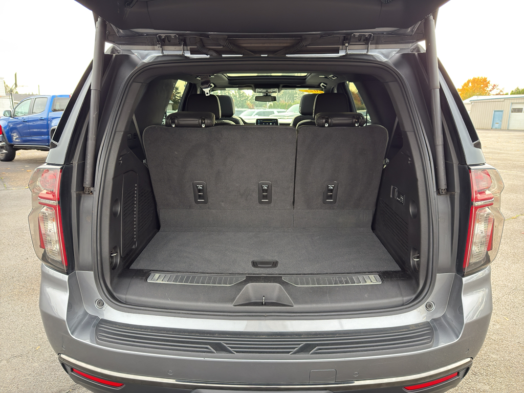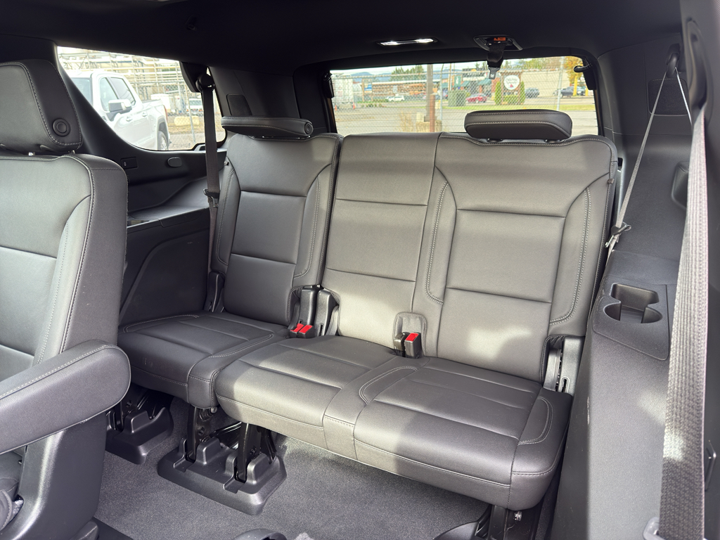 Driver Alert Package: Rear Cross Traffic Alert; Lane Change Alert with Side Blind Zone Alert. Luxury Package: HD Surround Vision; Heated 2nd Row Outboard Seats; 2nd Row Power Release 60/40 Split-Folding Bench Seat; Memory Settings; Power Tilt and Telescopic Steering Column; Rear Pedestrian Alert; Heated Steering Wheel; 3rd Row 60/40 Power-Folding Split-Bench Seat; Outside Heated Power-Adjustable Mirrors. Preferred Equipment Group 2Z7: Bright Front and Rear Door Sill Plates; Stop/start System Disable Button; Leather-Appointed Seat Trim; Remote Start; Hill Descent Control; 20" X 9" Machined Aluminum Wheels; Floor Console with Storage Area; Black Tubular Assist Steps; LED Daytime Running Lamps; Driver and Front Outboard Passenger Airbags; Memory Settings For Driver; Wireless Charging; Front High-Back Reclining Bucket Seats; Universal Home Remote; Color-Keyed Carpeting Floor Covering; Front Skid Plate; Front High-Approach Angle Fascia; Hands-Free Rear Power Programmable Liftgate; Chevrolet Infotainment 3 Premium System Radio; Bose 9-Speaker Stereo Audio System Feature; 2-Speed Active Electronic Autotrac Transfer Case; 1st and 2nd Row Color-Keyed Carpeted Floor Mats; Enhanced Driver Information Center; Red Horizontal-Mounted Recovery Hooks; SiriusXM Radio with 360L; Leather-Wrapped Steering Wheel; 275/60R20SL AT BW Tires; Infotainment Display; Auto-Dimming Inside Rearview Mirror; Automatic Stop/start. Dual-Pane Power Panoramic Sunroof. Black Roof Rack Cross Rails. Power Release 2nd Row Bucket Seats. Vertical Cargo Net. **Equipment listed is based on original vehicle build and subject to change. Please confirm the accuracy of the included equipment by calling the dealer prior to purchase.**